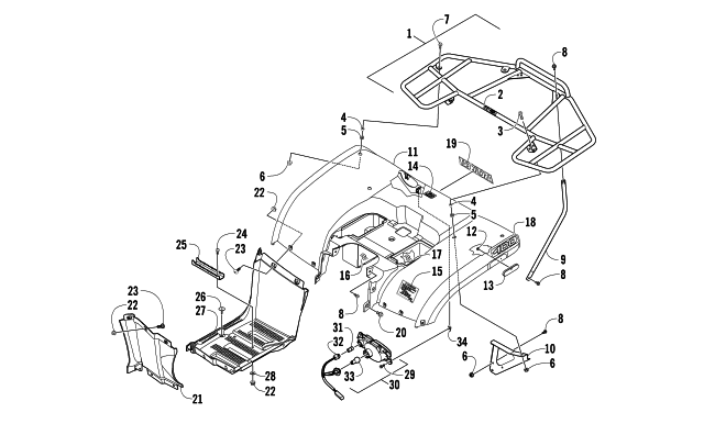 Parts Diagram for Arctic Cat 2013 400 CR ATV REAR BODY, RACK, AND TAILLIGHT ASSEMBLY