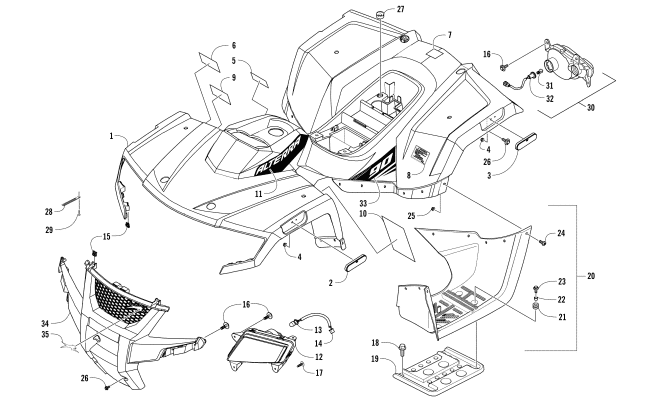 Arctic Cat Parts for 2017 ALTERRA 90 ATV BODY PANEL AND HEADLIGHT ASSEMBLY
