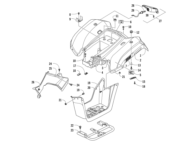 Arctic Cat Parts for 2017 150 UTILITY ATV REAR BODY PANEL AND TAILLIGHT ASSEMBLIES