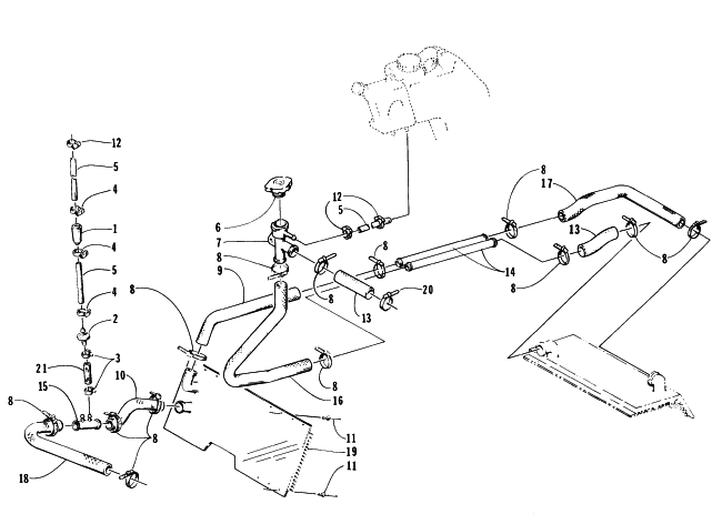 Parts Diagram for Arctic Cat 1996 THUNDERCAT SNOWMOBILE COOLING ASSEMBLY