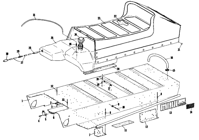 Arctic Cat Parts for 1978 EL TIGRE' 5000 F/A SNOWMOBILE TUNNEL, GAS TANK AND SEAT