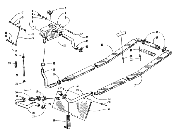 Parts Diagram for Arctic Cat 1997 EXT 580 EFI SNOWMOBILE COOLING ASSEMBLY
