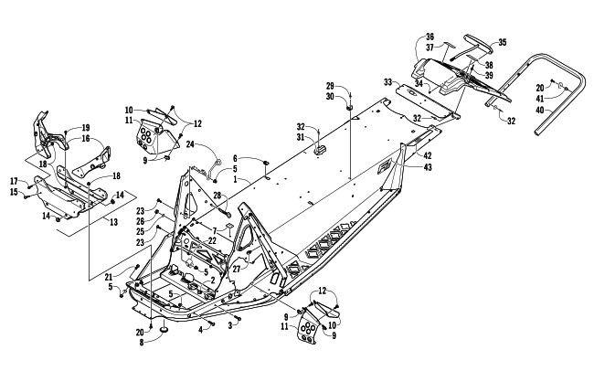 Arctic Cat Parts for 2014 F5 SNOWMOBILE CHASSIS, REAR BUMPER, AND SNOWFLAP ASSEMBLY