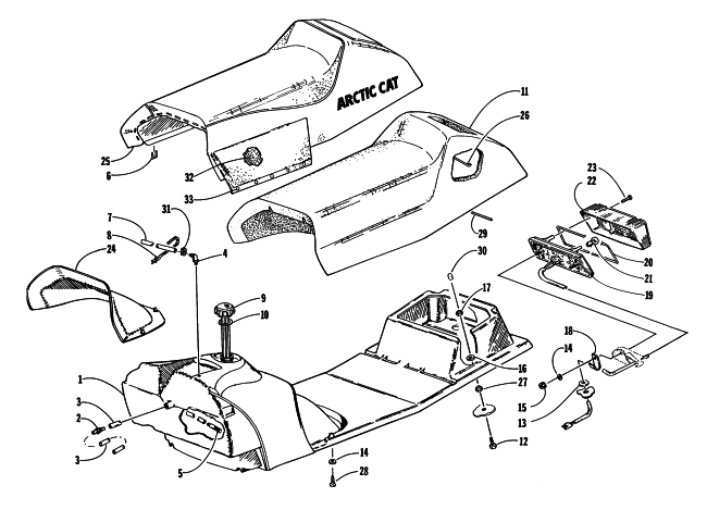 Arctic Cat Parts for 1998 ZR 500 (JANUARY) SNOWMOBILE GAS TANK, SEAT AND TAILLIGHT ASSEMBLY