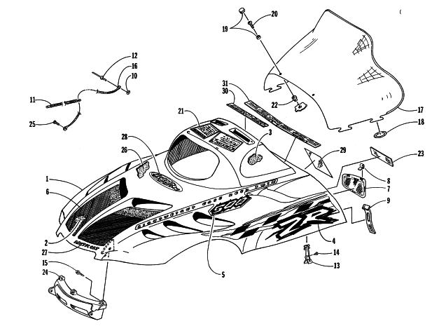 Arctic Cat Parts for 1998 ZR 500 (JANUARY) SNOWMOBILE HOOD AND WINDSHIELD ASSEMBLY