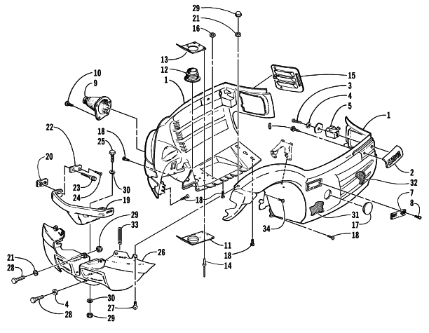 Arctic Cat Parts for 1999 PANTHER 550 SNOWMOBILE BELLY PAN AND FRONT BUMPER ASSEMBLY