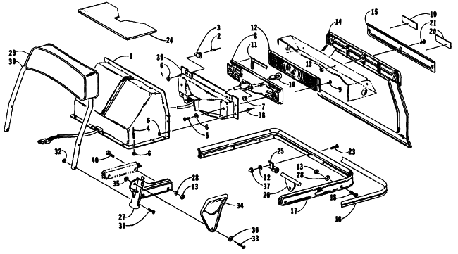 Arctic Cat Parts for 1990 PANTHER MOUNTAIN CAT SNOWMOBILE TOOLBOX, TAILLIGHT, AND REAR BUMPER