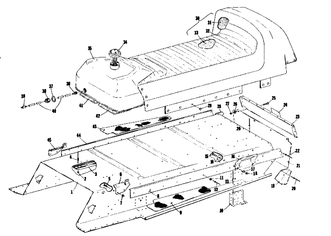 Parts Diagram for Arctic Cat 1975 PANTERA 340 SNOWMOBILE TUNNEL, GAS TANK AND SEAT