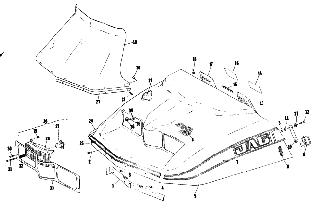 Parts Diagram for Arctic Cat 1976 JAG 275 SNOWMOBILE HOOD