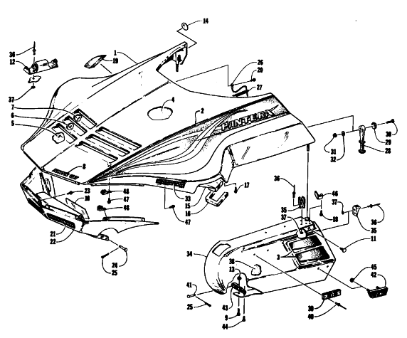 Parts Diagram for Arctic Cat 1993 PANTERA SNOWMOBILE HOOD AND SIDE PODS