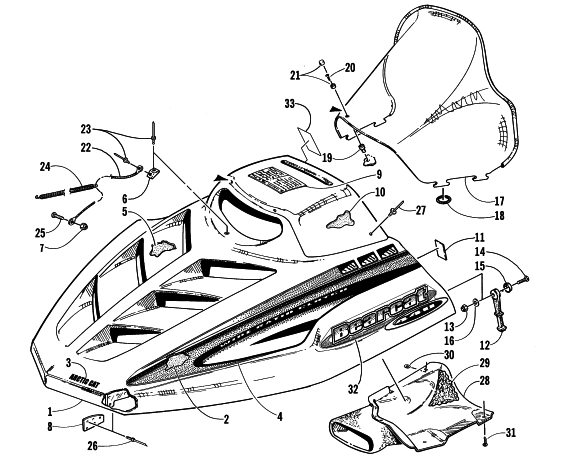 Parts Diagram for Arctic Cat 2000 BEARCAT 440 II SNOWMOBILE HOOD AND WINDSHIELD ASSEMBLY