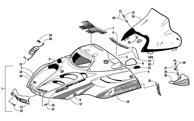 Arctic Cat Parts for 2002 4-STROKE TOURING () SNOWMOBILE HOOD AND WINDSHIELD ASSEMBLY