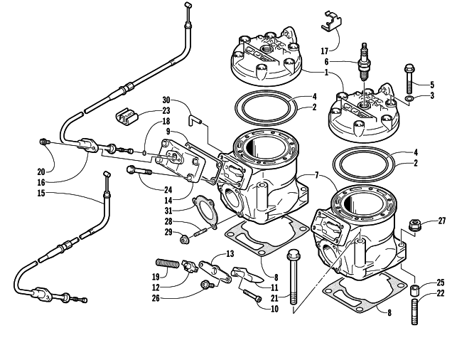 Arctic Cat Parts for 2002 MOUNTAIN CAT 800 (LE 144) SNOWMOBILE CYLINDER AND HEAD ASSEMBLY