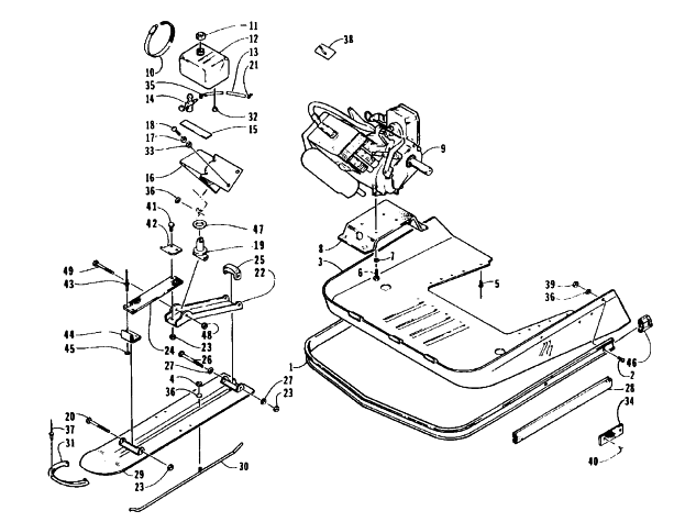 Parts Diagram for Arctic Cat 1995 KITTY CAT SNOWMOBILE SKI, ENGINE, AND BELLY PAN