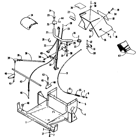 Arctic Cat Parts for 1995 KITTY CAT SNOWMOBILE STEERING, FRONT FRAME, AND CONSOLE