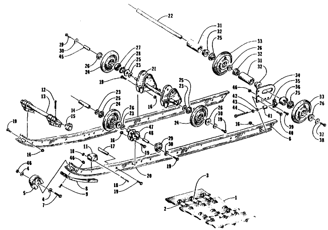 Parts Diagram for Arctic Cat 1995 PUMA DELUXE SNOWMOBILE SLIDE RAIL AND TRACK ASSEMBLY