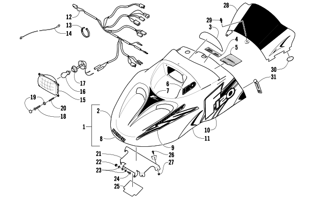 Arctic Cat Parts for 2006 F 120 SNOWMOBILE HOOD, HEADLIGHT, AND WINDSHIELD ASSEMBLY